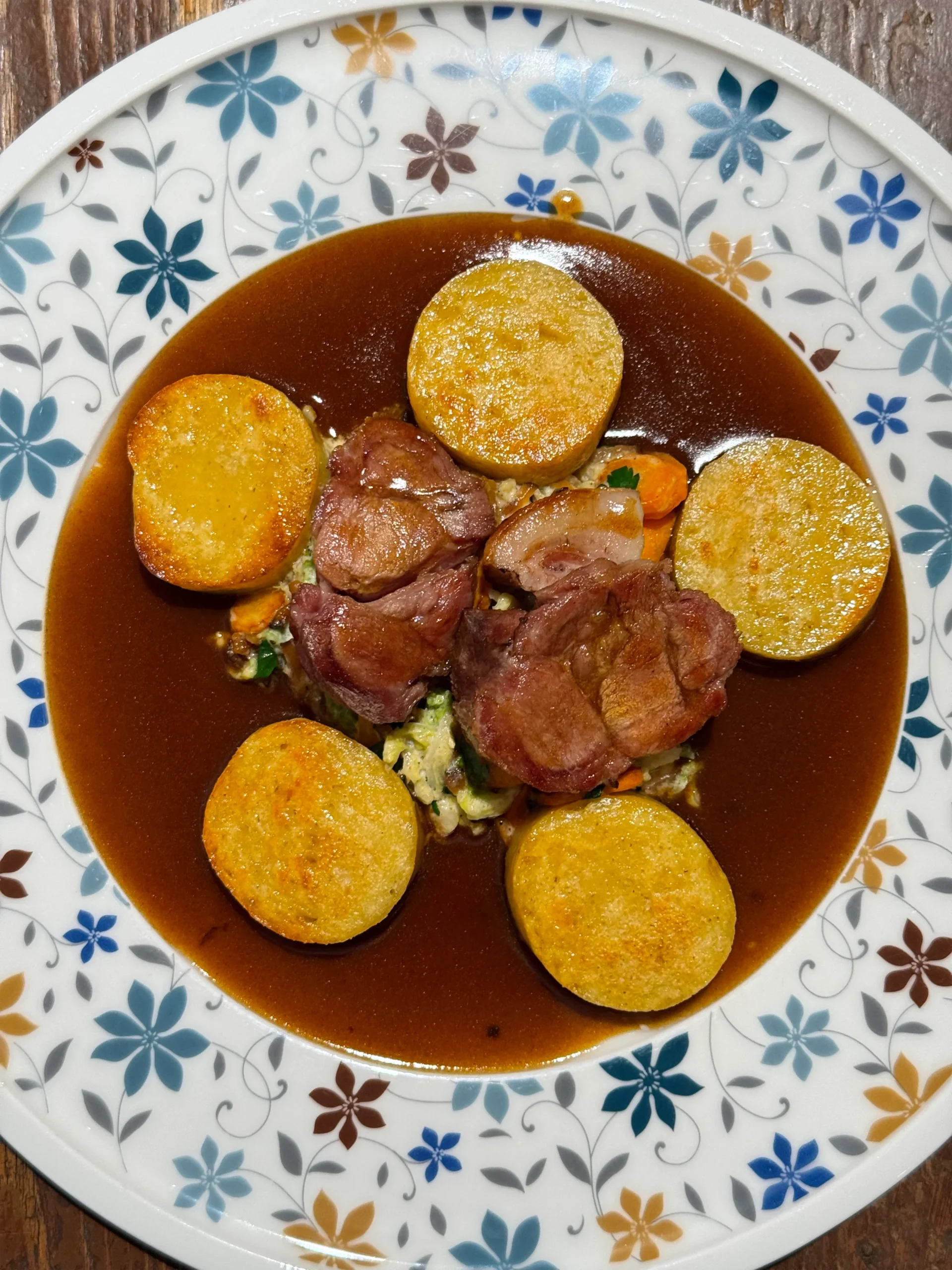 • Vaječné široké nudle, trhané kachní maso, kaštany, houby, uzené syrovátko